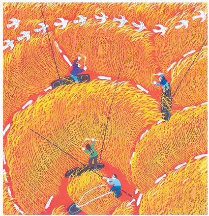 经过近三年多时间的培训,潘宇把30多位不会握画笔、不会着色的种田人,培训成独立作画的画师。在2020年的中国农民画精品展上,博里农民画入选和获奖数量均为第一。看到博里镇的人们在农闲时喜欢三五成群的一起作画,潘宇发自内心的高兴,他说:“不仅要播撒农民画的希望,还要把艺术创作实现产业化,土生土长的农民,才能靠画笔走上富裕之路。”