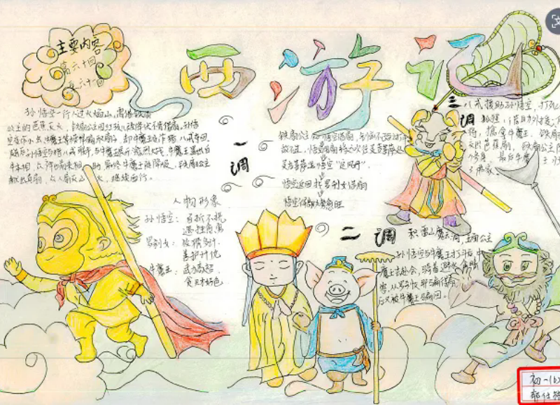 初一年级:55名学生获奖,其中特等奖13人、一等奖19人、二等奖23人,作品涵盖《朝花夕拾》《西游记》等经典章节,既清晰呈现文学逻辑,又兼具创意巧思;