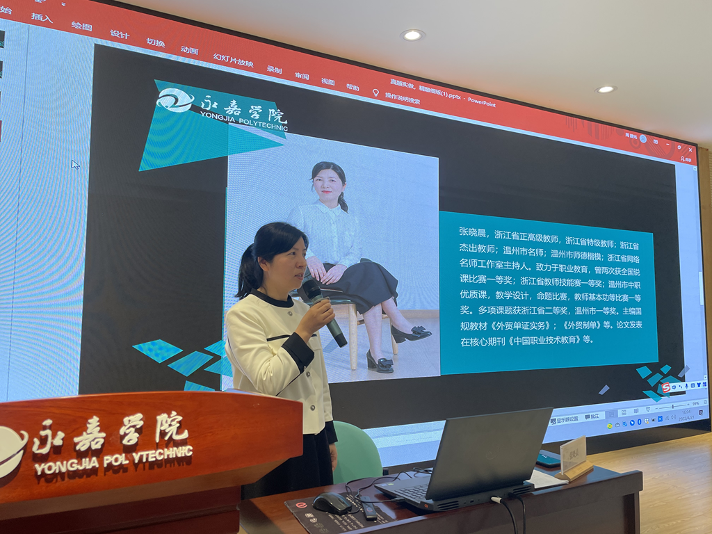 为提升教育科研水平,树立和强化课题研究意识,促进教育教学质量的提高,4月21日下午,浙江电大永嘉学院邀请了浙江省正高级教师张晓晨作《真题实做,精雕细琢》专题讲座,讲座由教研处处长谢丽莉主持。